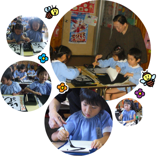 小学校就学前教育の一環として書道を取り入れ、集中力・態度教育・そして、文字を描く楽しさ、面白さを伝えていきたいと思います。