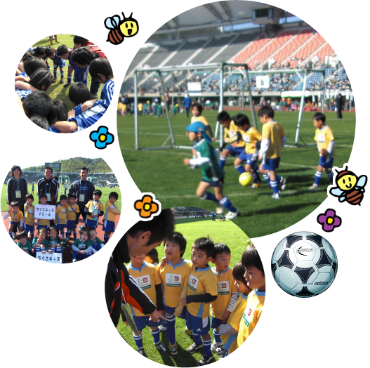 サッカーの基礎技術・調整力・筋力を養うことはもちろん、 サッカーを通して、ルールを守ること・お友達と協力すること 挨拶の大切さ・道具を大事に使うことなど【生きる力】を見つめて 大切な部分を大きく育てていければと思っています。